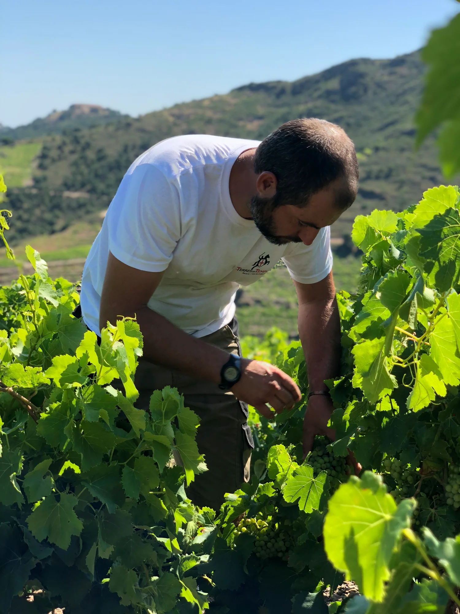 Poussant sur un sol de schiste pur, balayées par la Tramontane sous le soleil brûlant du sud de la France, les vignes se méritent. Les pentes abruptes des contreforts des Pyrénées imposent un travail exclusivement manuel du vignoble depuis des siècles. Chaque étape de l’entretien de la vigne, de la construction des murettes jusqu’à la vendange, sont réalisées à la main et à dos d’homme.